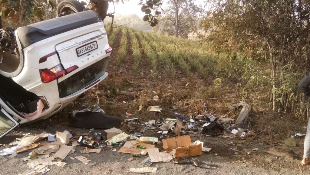 સાગબારા- ડેડીયાપાડા નેશનલ હાઇવે ઉપર મેડીયાસાગ પાસે કારમાં વિદેશી દારૂ લઈ જતી વખતે પલ્ટી મારતાં દારૂની રેલમછેલ; લોકોએ ચલાવી લુંટ…!!!