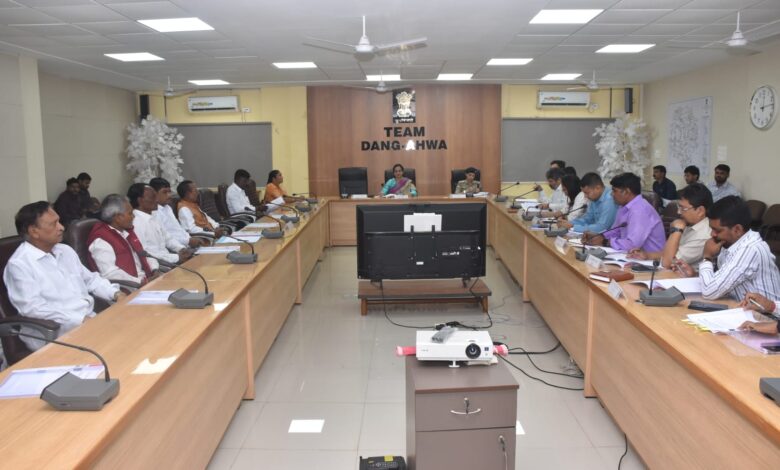 દિનકર બંગાળ, આહવા: ડાંગ જિલ્લાની અનોખી લોકસંસ્કૃતિ અને પરંપરાનું પ્રતીક એવા ‘ડાંગ દરબાર’ના ઐતિહાસિક લોકમેળાના આયોજનને લઈ પૂર્વ તૈયારીના ભાગરૂપે જિલ્લા સેવા સદન સ્થિત સભાખંડમાં મહત્વની બેઠક યોજાઈ હતી. જિલ્લા કલેક્ટર શાલિની દુહાનના અધ્યક્ષસ્થાને યોજાયેલ આ બેઠકમાં રાજવીશ્રીઓ, વેપારી મહાજનો, વેપારી મંડળના પ્રતિનિધિઓ તથા વહીવટી તંત્રના ઉચ્ચ અધિકારીઓ ઉપસ્થિત રહ્યા હતા.