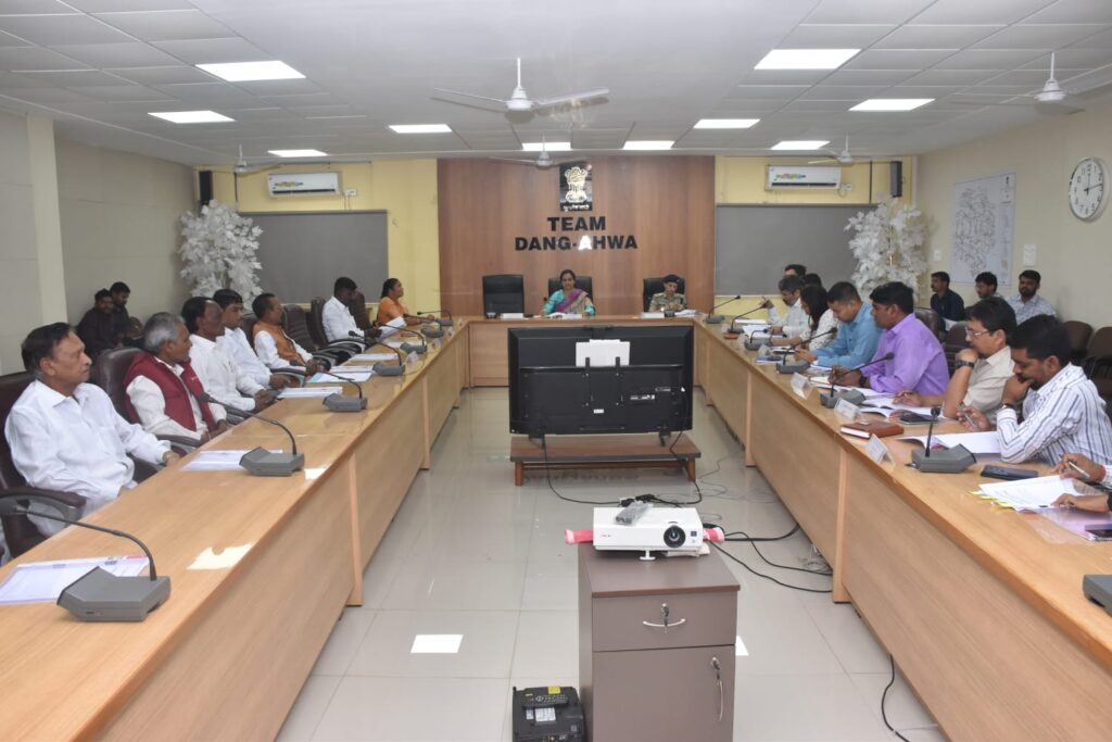 દિનકર બંગાળ, આહવા: ડાંગ જિલ્લાની અનોખી લોકસંસ્કૃતિ અને પરંપરાનું પ્રતીક એવા ‘ડાંગ દરબાર’ના ઐતિહાસિક લોકમેળાના આયોજનને લઈ પૂર્વ તૈયારીના ભાગરૂપે જિલ્લા સેવા સદન સ્થિત સભાખંડમાં મહત્વની બેઠક યોજાઈ હતી. જિલ્લા કલેક્ટર શાલિની દુહાનના અધ્યક્ષસ્થાને યોજાયેલ આ બેઠકમાં રાજવીશ્રીઓ, વેપારી મહાજનો, વેપારી મંડળના પ્રતિનિધિઓ તથા વહીવટી તંત્રના ઉચ્ચ અધિકારીઓ ઉપસ્થિત રહ્યા હતા.